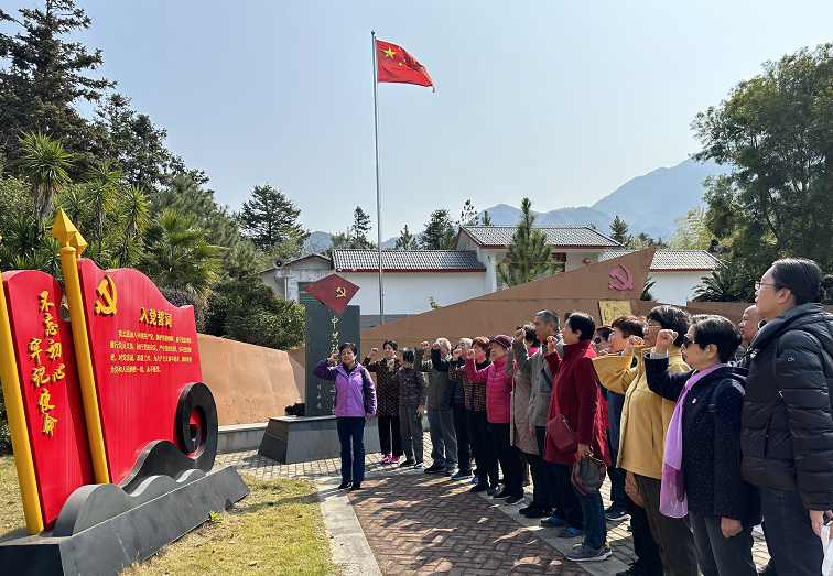在福建省委舊址展覽館,第一黨支部書(shū)記康寬紅帶領(lǐng)老黨員在入黨誓詞碑前再次舉起右手重溫入黨誓詞,之后參觀了該展館內(nèi)容。