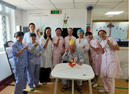 醫(yī)護人員與護理員一起為過生日的老人家們慶生,共同唱生日歌、吹蠟燭、送上真誠的祝福。滿滿的快樂與幸福洋溢著家人般的溫暖,溫馨的氛圍讓過生日的老人笑的很甜。