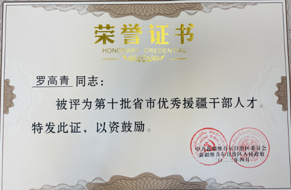 在援疆工作中,羅高青同志堅(jiān)守初心使命,堅(jiān)決做到援疆工作起好步、收好尾、見(jiàn)成效,踐行著醫(yī)者使命,書寫著援疆大愛(ài)!