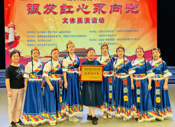 6月20日上午,省直機(jī)關(guān)老體協(xié)“喜慶建黨日,銀發(fā)紅心永向黨”文體展演在省老干部活動(dòng)中心金秋劇場舉行。共有20多個(gè)單位、15個(gè)節(jié)目參演。我院組織退休舞蹈隊(duì)代表福建省衛(wèi)生健康委員會(huì)參加展演,榮獲優(yōu)秀組織獎(jiǎng)。