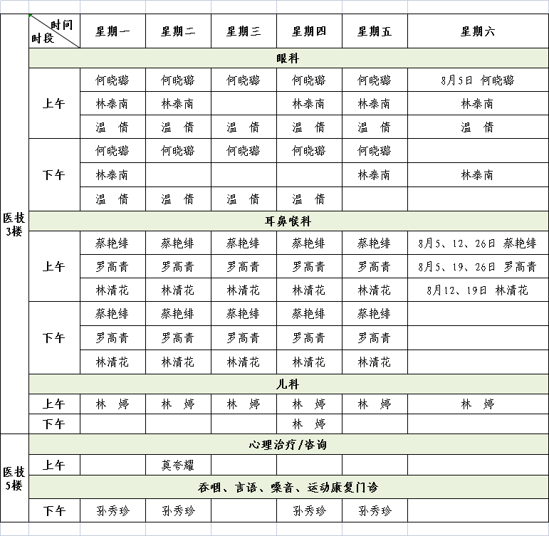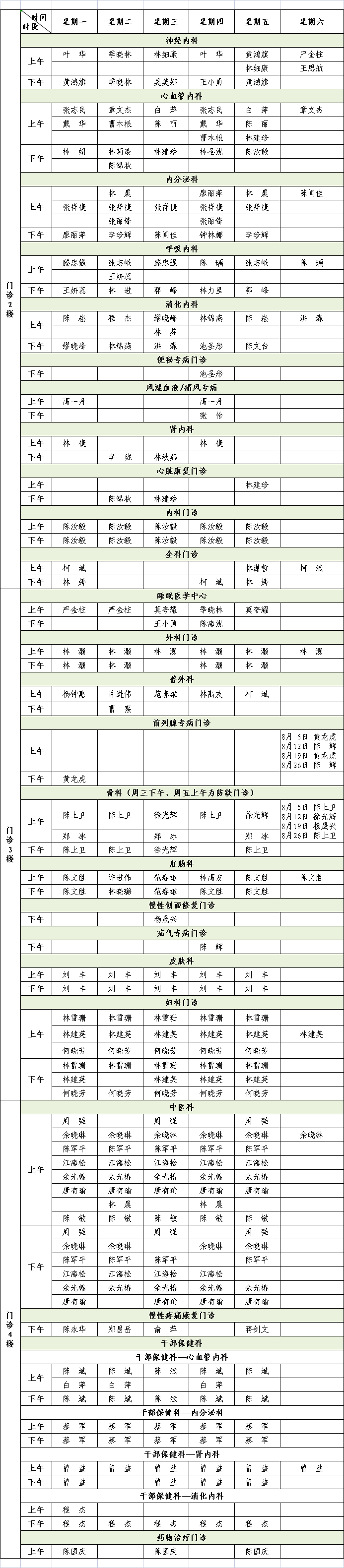 福建省級(jí)機(jī)關(guān)醫(yī)院2023年8月專(zhuān)家門(mén)診排班表來(lái)啦!有需要的小伙伴趕緊收藏。