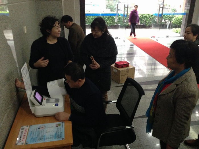 為進(jìn)一步落實(shí)國(guó)家、省衛(wèi)生計(jì)生委改善醫(yī)療服務(wù)行動(dòng)計(jì)劃,12月23日,我院為周邊省直廳局機(jī)關(guān)、學(xué)校、幼兒園等14個(gè)單位投放便民惠民健康設(shè)施,開展全民健康管理活動(dòng)。為學(xué)校、幼兒園贈(zèng)送深圳雙佳SK-CK型身高體重測(cè)量?jī)x8臺(tái),為各省直廳局單位贈(zèng)送歐姆龍HBP-9021型血壓測(cè)量?jī)x5臺(tái),并與14家共建單位簽訂了“實(shí)施改善醫(yī)療服務(wù)行動(dòng)計(jì)劃共建便民惠民健康設(shè)施協(xié)議”。此項(xiàng)便民行動(dòng)深受共建單位的好評(píng),目前14臺(tái)儀器已安裝調(diào)試完畢并投入使用。 (工會(huì))