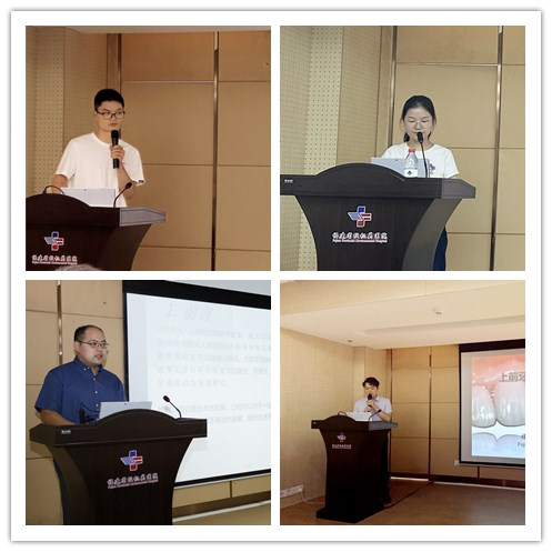 會議第二部分為我院俞曉峰、程仲茂、劉瑞敏、李麒、陳楠、李燕珠、蘇伯燦及周晉陽分別以《顯微根尖手術(shù)切口設(shè)計及縫合》《牙周正畸聯(lián)合治療一例》《前牙區(qū)美學(xué)區(qū)種植修復(fù)病例及即刻種植爭議與共識》《上前牙氧化鋯全瓷冠再修復(fù)》《正畸修復(fù)聯(lián)合治療兒童牙體缺損一例》《活髓切斷術(shù)在不可復(fù)性牙髓炎的臨床療效觀察》《數(shù)字化印模在無牙合種植修復(fù)中的應(yīng)用現(xiàn)狀》《日常患者放射檢查的選擇跟相對應(yīng)的優(yōu)勢跟劣勢》為題進(jìn)行經(jīng)驗分享。