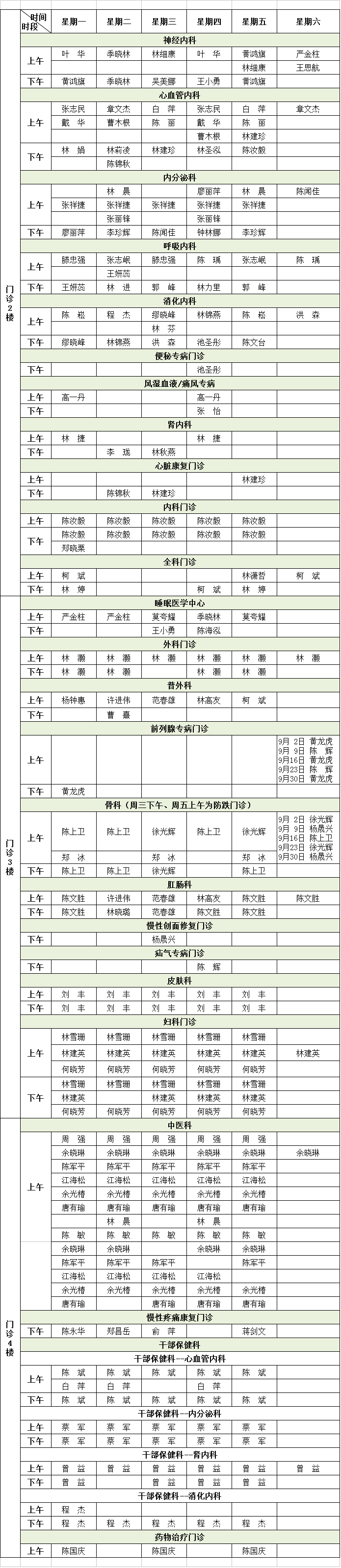 福建省級機關醫(yī)院2023年9月專家門診排班表來啦!有需要的小伙伴趕緊收藏。