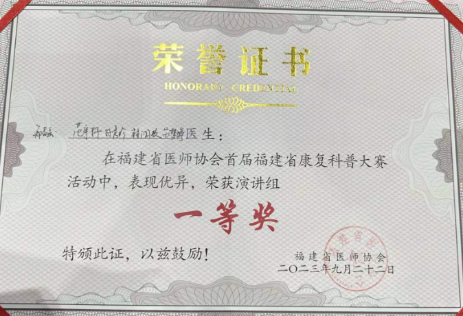 本次獲獎是對我院康復科健康科普工作的高度肯定,更是鞭策與激勵。接下來,康復科將以此為契機,大力推進全院康復能力建設,不斷提升康復水平,切實提升全民健康素質,助力健康中國建設。