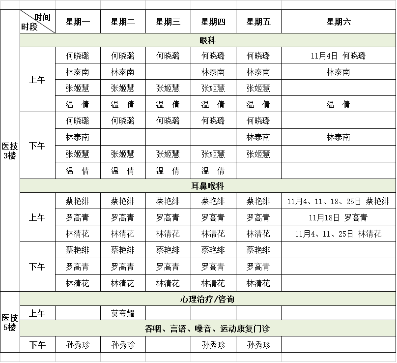 福建省級(jí)機(jī)關(guān)醫(yī)院2023年11月專家門診排班表來啦!有需要的小伙伴趕緊收藏。