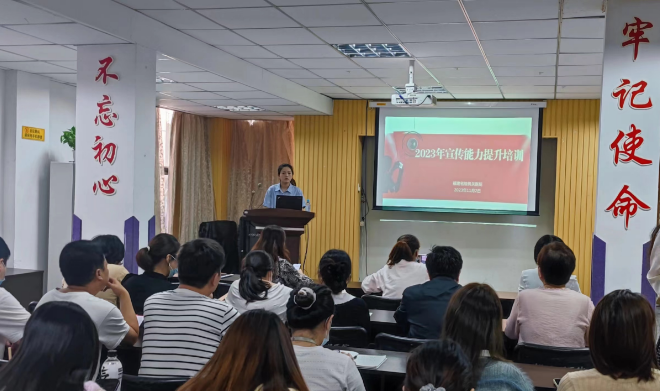 為深入貫徹落實習(xí)近平總書記關(guān)于宣傳思想文化工作的重要指示精神,切實增強做好新時代新征程宣傳思想文化工作的責任感使命感,推動意識形態(tài)工作取得新的成效,提升醫(yī)院品牌建設(shè),11月2日,我院組織開展2023年宣傳能力提升培訓(xùn),邀請海峽都市報記者林婕圍繞“新媒體短視頻拍剪”主題進行授課。各科室宣傳員共40余人參加培訓(xùn)會。