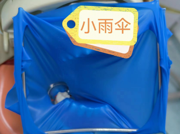 口腔診療時(shí)小朋友總是對陌生的口腔器械感到恐懼,為了讓小朋友減少抵觸情緒,口腔科的醫(yī)務(wù)人員也是想盡辦法,站在小朋友的角度,為口腔器械取一些可愛的別稱,將備牙的快速手機(jī)比作會出水的小水槍,吸唾管比作大象鼻子,橡皮障比作小雨傘……讓這些器械在小朋友腦海中的形象變得生動(dòng)可愛,并在診療前先示范講解,以消除小朋友牙科恐懼癥,提高配合度。