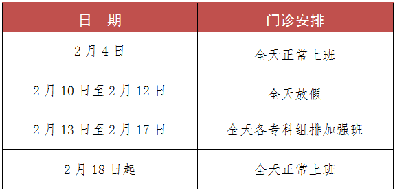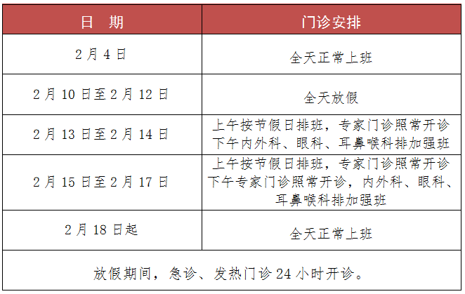 2024年春節(jié)期間門診安排