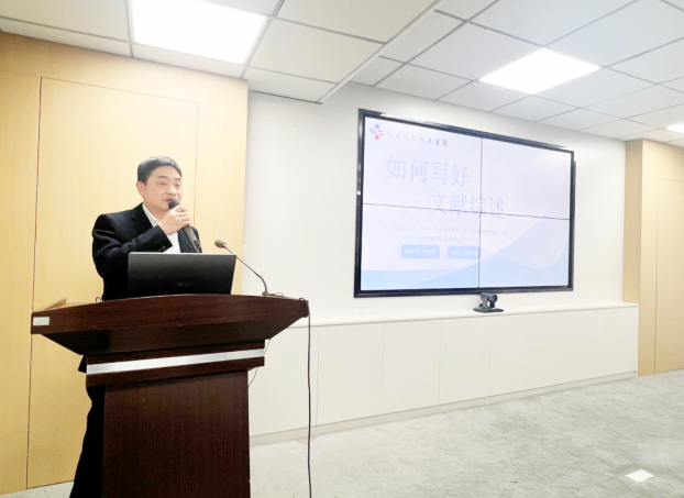 會(huì)上,眼科林泰南副主任醫(yī)師以“如何撰寫(xiě)和發(fā)表SCI論文”為題,從SCI期刊論文的組成部分、寫(xiě)作要領(lǐng)、發(fā)表流程等方面進(jìn)行了分享。嚴(yán)金柱副院長(zhǎng)以“如何寫(xiě)好文獻(xiàn)綜述”為主題,向大家講述了文獻(xiàn)綜述的知識(shí)、管理、閱讀和寫(xiě)作規(guī)范,并結(jié)合2023年未申報(bào)課題人員書(shū)寫(xiě)綜述的情況進(jìn)行詳細(xì)反饋。