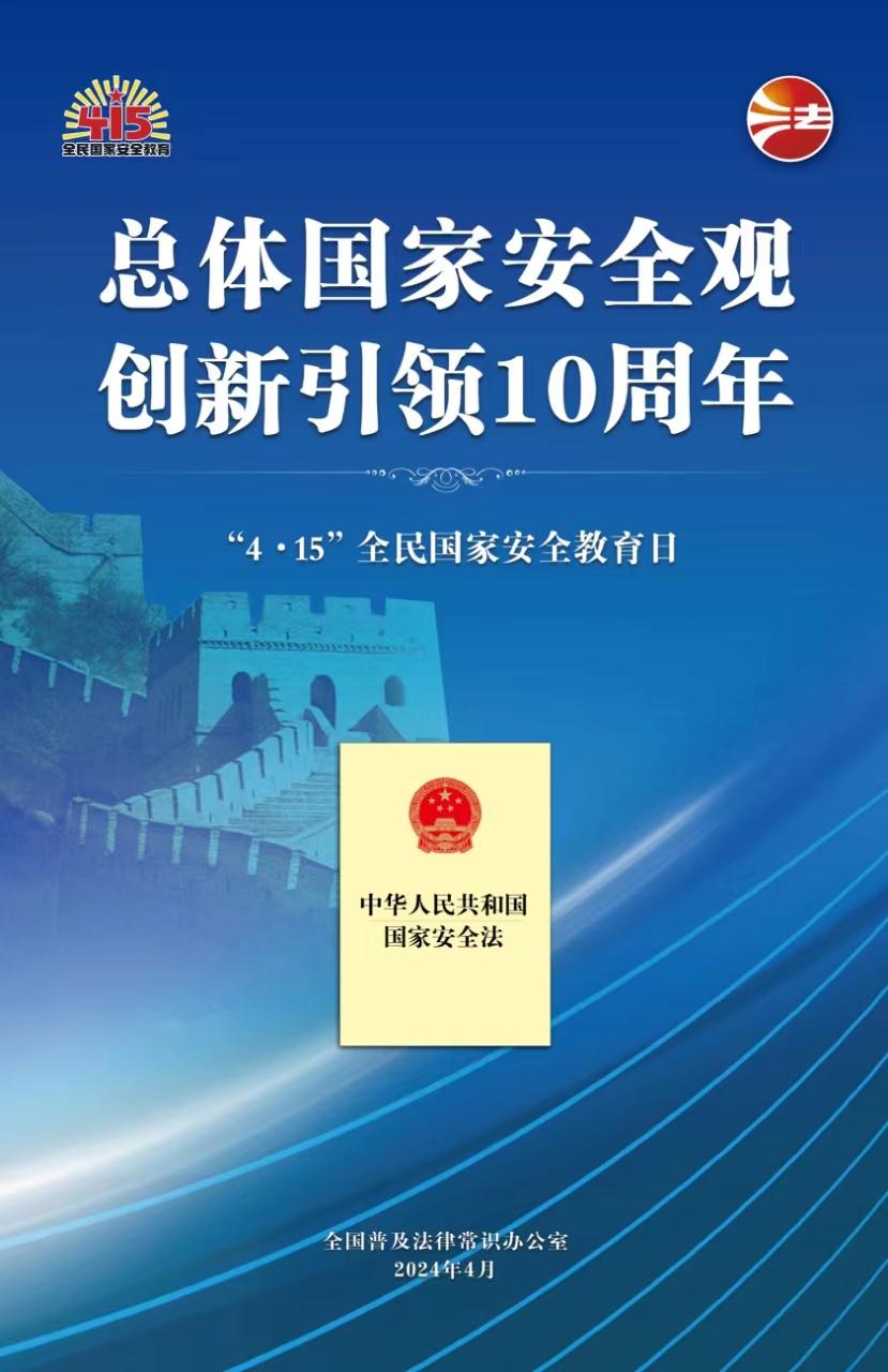 2024年4月15日是我國第九個(gè)全民國家安全教育日今年的活動(dòng)主題是“總體國家安全觀 創(chuàng)新引領(lǐng)10周年”。樹立國家安全意識(shí)自覺關(guān)心、維護(hù)國家安全是每個(gè)公民的基本義務(wù)。