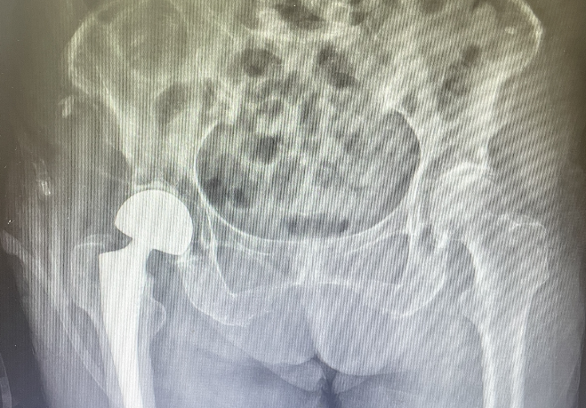 手術(shù)當(dāng)日,在麻醉科、內(nèi)科、骨科醫(yī)療團(tuán)隊(duì)的共同努力下,陳上衛(wèi)、徐光輝醫(yī)師團(tuán)隊(duì)為張奶奶行右側(cè)人工股骨頭置換術(shù),術(shù)中嚴(yán)密監(jiān)測(cè)血壓減少術(shù)中出血量。手術(shù)歷時(shí)40分鐘,順利完成。術(shù)后復(fù)查X光片,人工髖關(guān)節(jié)位置良好,術(shù)后第一天即可下床站立,并在助行器輔助下行走??祻?fù)科孫秀珍副主任醫(yī)師為張奶奶制定術(shù)后康復(fù)方案,在出院前,再次告知術(shù)后康復(fù)的重要性,以及預(yù)防再次跌倒的措施。