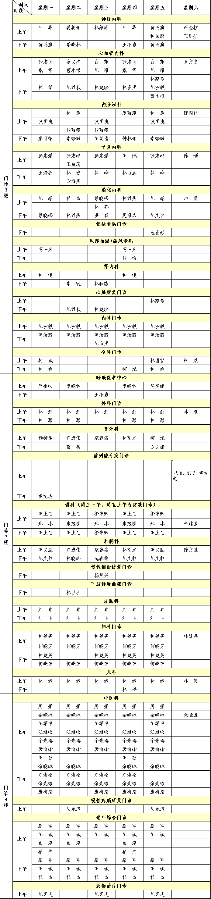 福建省級機關醫(yī)院2024年6月專家門診排班表來啦!有需要的小伙伴趕緊收藏。