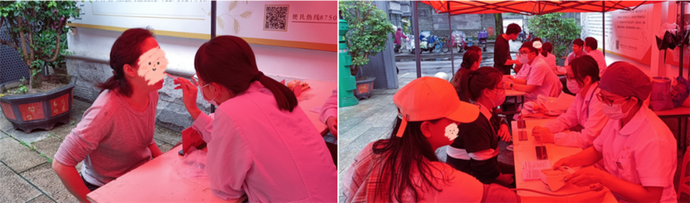 活動當(dāng)天,細雨綿綿。由我院黨員志愿者組成的義診小隊早早地抵達中山社區(qū),他們迅速而有序地忙碌起來,搭起帳篷,精心擺放各類醫(yī)療設(shè)備,為即將展開的義診活動做足準備。隨著居民的陸續(xù)到來,現(xiàn)場氣氛逐漸熱烈起來。