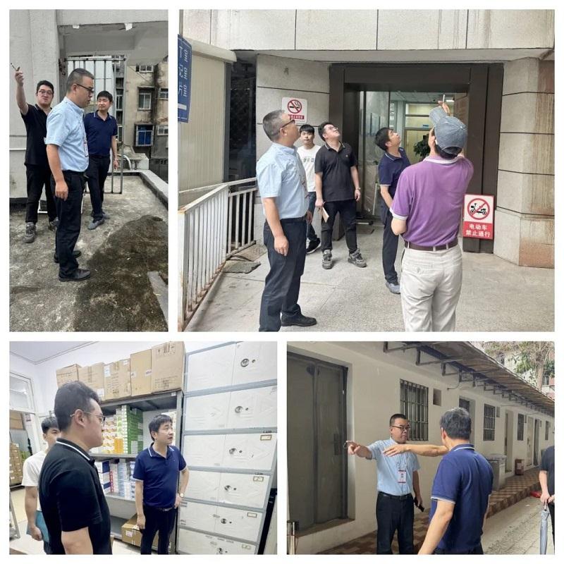 7月24日上午,黨委副書記(主持工作)、院長章文杰,副院長嚴金柱帶領保衛(wèi)科、醫(yī)教部、總務科、設備科、藥劑科等相關科室負責人,對醫(yī)技樓施工工地、放射科工地、門診病房樓屋面、藥劑設備總務倉庫、5號樓、食堂等低洼易澇地帶等重點區(qū)域的防臺風準備工作進行督查,要求加固工地腳手架、清理零星建筑垃圾、疏通排水管道,并做好應急處置人員的排班備班工作。