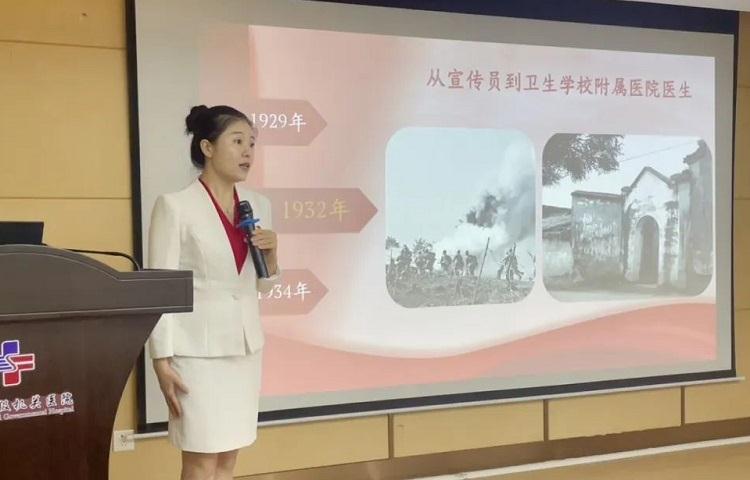 宣講會現(xiàn)場,由龍巖市中心血站黃莉娜同志、連城縣衛(wèi)健局吳莉珊同志、上杭縣衛(wèi)健局馬啟權(quán)同志、長汀縣衛(wèi)健局溫曉麗同志組成的紅醫(yī)精神巡回宣講團為我們做了一場生動詳實、充滿激情、感人至深的“紅醫(yī)”精神宣講報告。他們以生動的語言和飽滿的情感,講述了傅連暲、江一真、白求恩、林金亮等紅醫(yī)先輩的光輝事跡,以及唐義貞、徐根竹、羅化成等一代紅色醫(yī)務(wù)人員的感人故事,深刻詮釋了以“政治堅定、忠誠執(zhí)著,生命至上、救死扶傷,無私奉獻、艱苦奮斗,技術(shù)優(yōu)良、敢于創(chuàng)新”為鮮明特質(zhì)的“紅醫(yī)”精神。