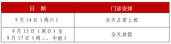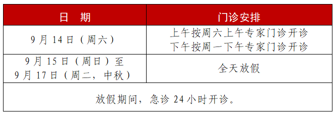 福建省級(jí)機(jī)關(guān)醫(yī)院中秋期間門診安排