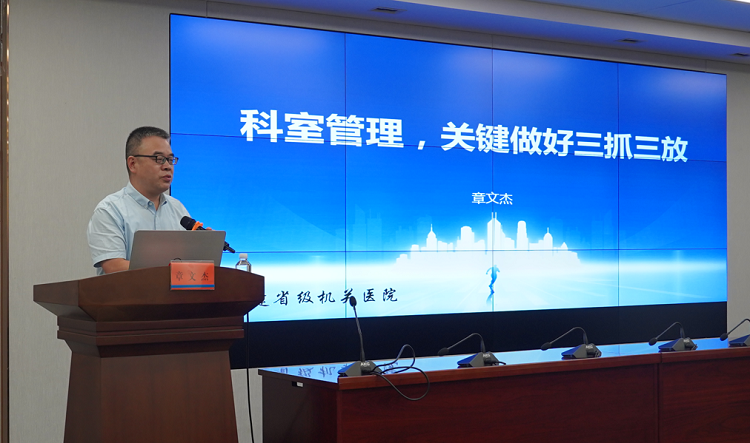 科室管理的成敗是現代化醫(yī)院管理的重要因素,如何科學的管理好科室、建設好科室,是擺在當今科室管理者面前的一道重要課題。黨委副書記(主持工作)、院長章文杰以《科室管理,關鍵做好三抓三放》為題,從管理者的核心職責、必備素養(yǎng)等方面進行引導,深入剖析了中層管理人員的角色定位、職責所在,并利用貼切的案例分享,啟發(fā)大家用心感悟管理之精髓。