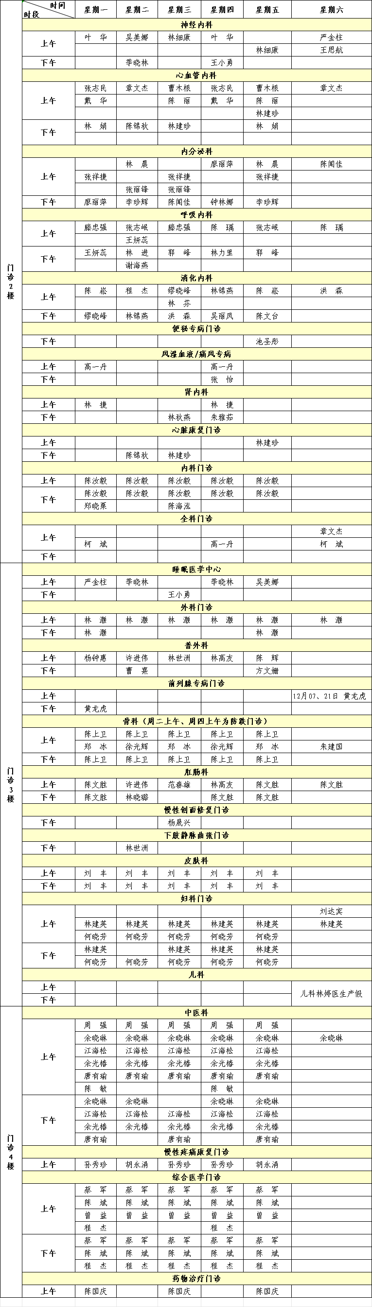 福建省級機關醫(yī)院2024年12月專家門診排班表來啦!有需要的小伙伴趕緊收藏。