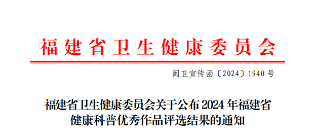外科徐光輝的參賽作品《上班一族,坐、站辦公均有講究》獲2024年福建省健康科普優(yōu)秀作品三等獎(jiǎng)。