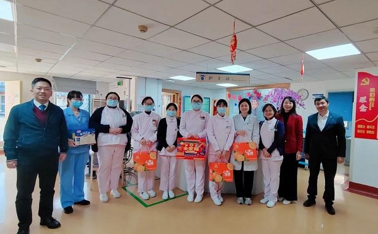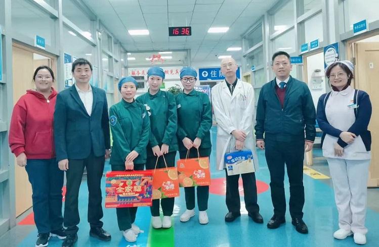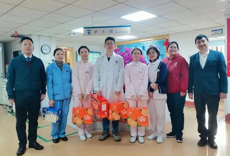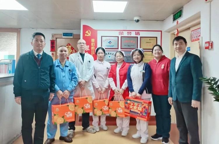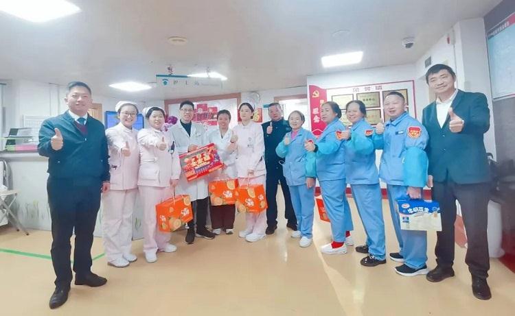 “給你們拜年了!”“大家辛苦了!”“新的一年巳巳如意”……走訪慰問中,院領(lǐng)導(dǎo)與在崗的醫(yī)護(hù)人員親切交流,送上親切溫暖的新春祝福和工會(huì)的慰問品。