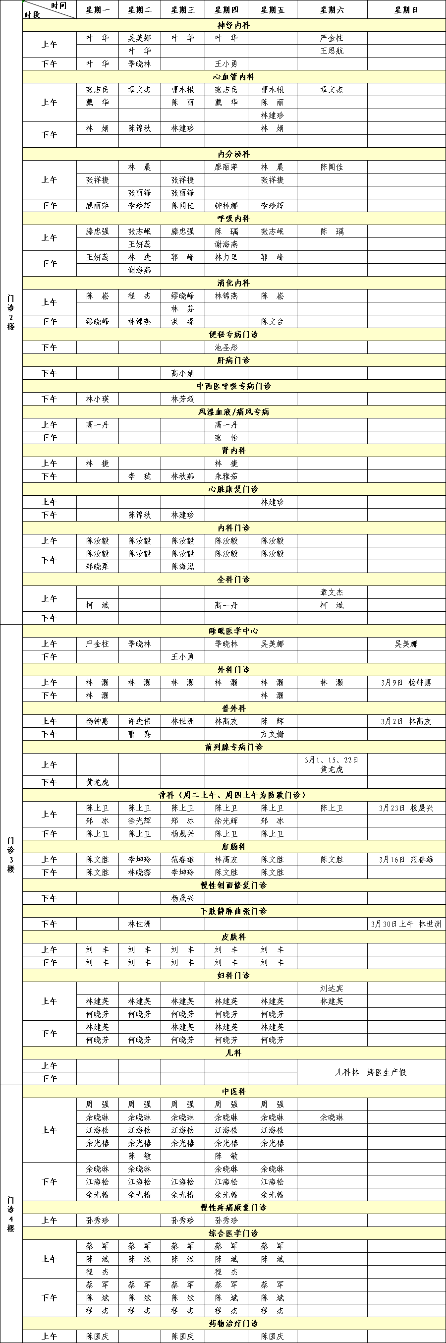 福建省級機(jī)關(guān)醫(yī)院2025年3月專家門診排班表來啦!有需要的小伙伴趕緊收藏。