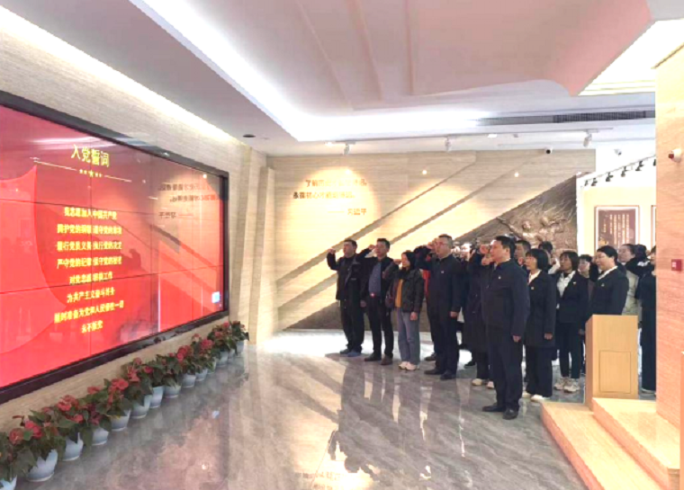 隨后,由黨委副書記黃純領(lǐng)誓,帶領(lǐng)全體黨員重溫入黨誓詞。“我志愿加入中國共產(chǎn)黨……隨時(shí)準(zhǔn)備為黨和人民犧牲一切,永不叛黨”,鏗鏘有力的聲音回蕩在革命英烈事跡陳列館,重溫入黨時(shí)的莊嚴(yán)承諾,在黨旗下接受初心的淬煉和洗禮。