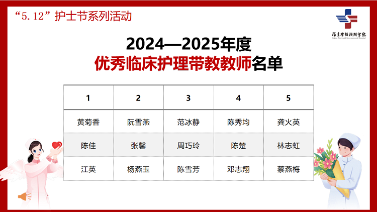 頒發(fā)2024-2025年度優(yōu)秀臨床護(hù)理帶教教師獎(jiǎng)