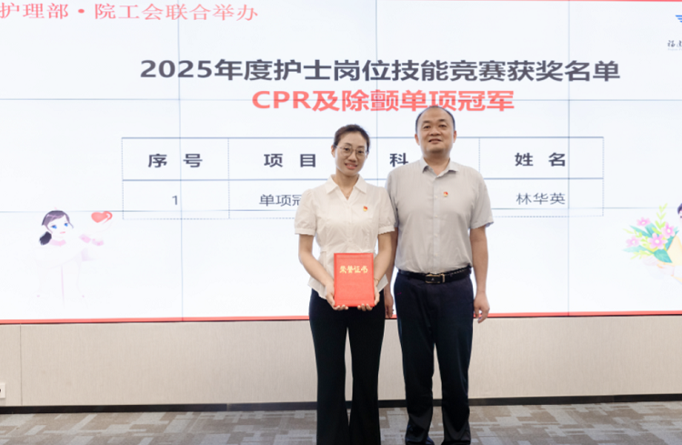 頒發(fā)護(hù)士崗位技能競(jìng)賽單項(xiàng)(CPR+除顫)一等獎(jiǎng)