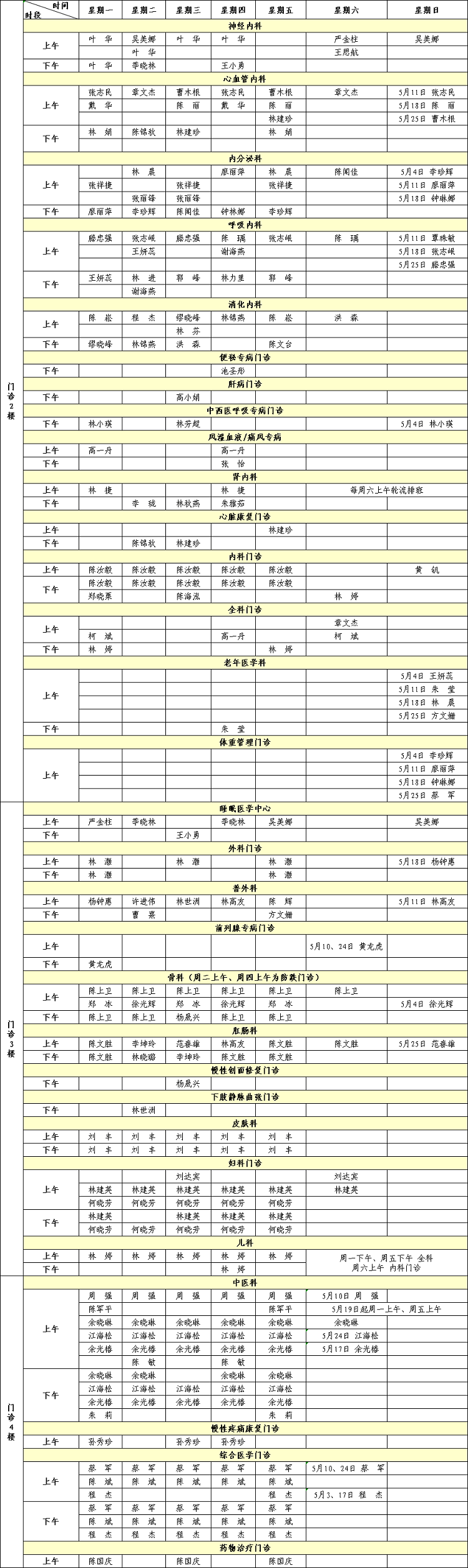 福建省級(jí)機(jī)關(guān)醫(yī)院2025年5月專家門診排班表來啦!有需要的小伙伴趕緊收藏。