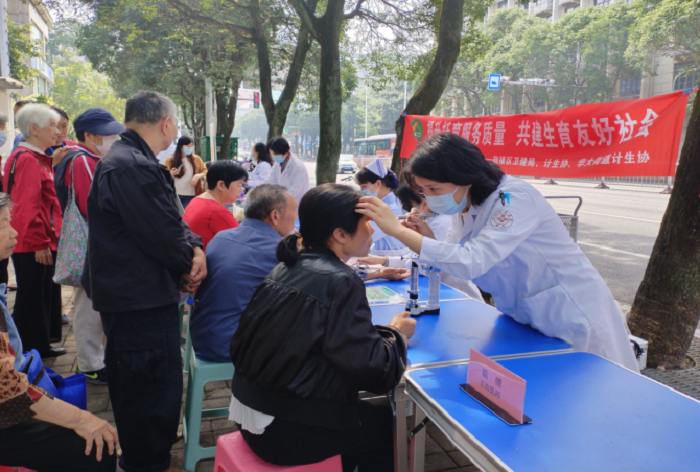 活動(dòng)當(dāng)天,我院眼科專家團(tuán)隊(duì)充分發(fā)揮專業(yè)優(yōu)勢,為居民提供了全面、細(xì)致的眼健康檢查,包括視力檢測、眼壓測量、眼底檢查等專業(yè)眼科項(xiàng)目,同時(shí)還開展了免費(fèi)測血壓、測血糖服務(wù),以便綜合評(píng)估居民健康狀況。專家們耐心解答市民關(guān)于眼部健康的各類疑問,針對(duì)不同人群的眼部問題,提供個(gè)性化的治療建議與健康指導(dǎo),尤其在兒童青少年近視防控、老年人白內(nèi)障防治等重點(diǎn)領(lǐng)域,給予了深入專業(yè)的指導(dǎo),贏得了市民的廣泛好評(píng)。