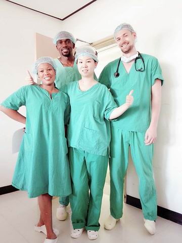 在仰加奎醫(yī)院,我除了負(fù)責(zé)普外科、泌尿外科和婦產(chǎn)科手術(shù),還需要負(fù)責(zé)腔鏡手術(shù)的器械準(zhǔn)備和臺(tái)上配合。每天需持續(xù)工作8-10小時(shí)左右,下午4、5點(diǎn)鐘才能回駐地吃午飯。特別是仰加奎醫(yī)院的院長(zhǎng)需要開(kāi)展腔鏡手術(shù)時(shí),手術(shù)室常常要求我能留下來(lái)配合手術(shù)。她們常說(shuō):“you are only one can use laparoscope set. So we need you ,please, please ---,禁不住她們的軟磨硬泡我只好留下來(lái)加班手術(shù)。 令我受到深深觸動(dòng)的還有一次:那天,已經(jīng)是下午5點(diǎn)多,還有一個(gè)25歲的黑人小伙的手術(shù)沒(méi)做,他被兩次送到手術(shù)臺(tái)又被兩次叫下手術(shù)臺(tái)。因?yàn)檫@個(gè)時(shí)候早就到下班時(shí)間了,我的同事們都感到很疲倦了,她們告訴主刀沒(méi)手術(shù)室護(hù)士,下班時(shí)間只做急診手術(shù)。這小伙流淚了,但沒(méi)有和在場(chǎng)的所有醫(yī)務(wù)人員爭(zhēng)執(zhí)。我問(wèn)主刀醫(yī)生:“為什么這病人哭了?”主刀醫(yī)生告訴我:“他為做這個(gè)手術(shù)等了一個(gè)月了,你能否加班幫忙把他這個(gè)手術(shù)做了?”那小伙的行為深深打動(dòng)了我,我說(shuō):“沒(méi)關(guān)系”。這個(gè)病人第三次回到手術(shù)臺(tái),7點(diǎn)鐘手術(shù)結(jié)束,病人拉住我說(shuō):“you are my angel.”(我英文名叫angela).