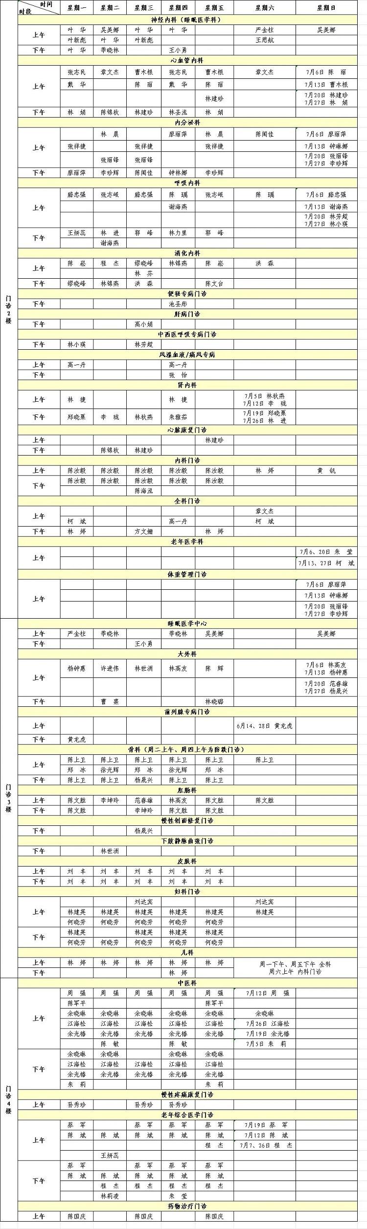 福建省級機關(guān)醫(yī)院2025年7月專家門診排班表來啦!有需要的小伙伴趕緊收藏。
