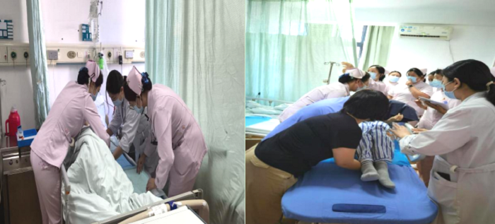 正當醫(yī)護人員緊張?zhí)幚硇g(shù)后出血事件時,另一危機接踵而至。留守病房的護士在巡視中發(fā)現(xiàn)一位老人嗆咳、嘔吐胃內(nèi)容物,口唇紫紺,末梢氧飽和度不足80%,初步判斷為誤吸。值班護士即刻啟動誤吸應急預案,提高給氧量,利用中心負壓清除患者口鼻腔、氣道誤吸物,并通知值班醫(yī)生。面對人力資源不足的情況,迅速啟動人力資源不足應急預案,匯報護士長啟動當日備班,并向就近雙崗科室請求人力支援。在多科室醫(yī)護人員緊密協(xié)作下,誤吸患者成功脫離危險,備班人力也在半小時內(nèi)抵達科室,高效完成后續(xù)醫(yī)囑處理等工作。