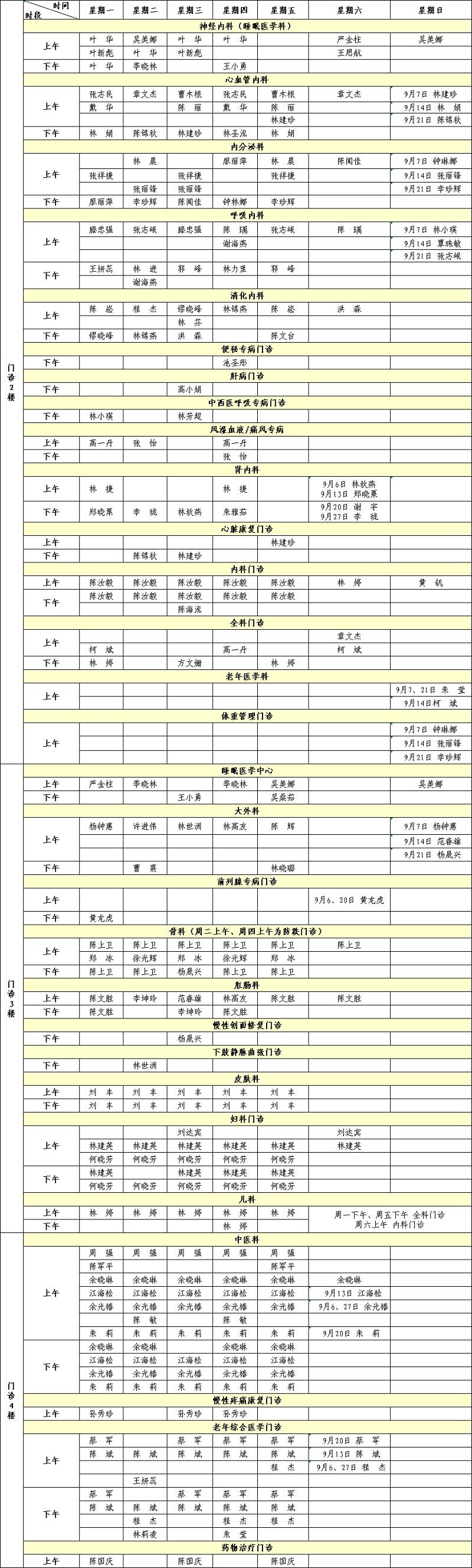 福建省級機(jī)關(guān)醫(yī)院2025年9月專家門診排班表來啦!有需要的小伙伴趕緊收藏。