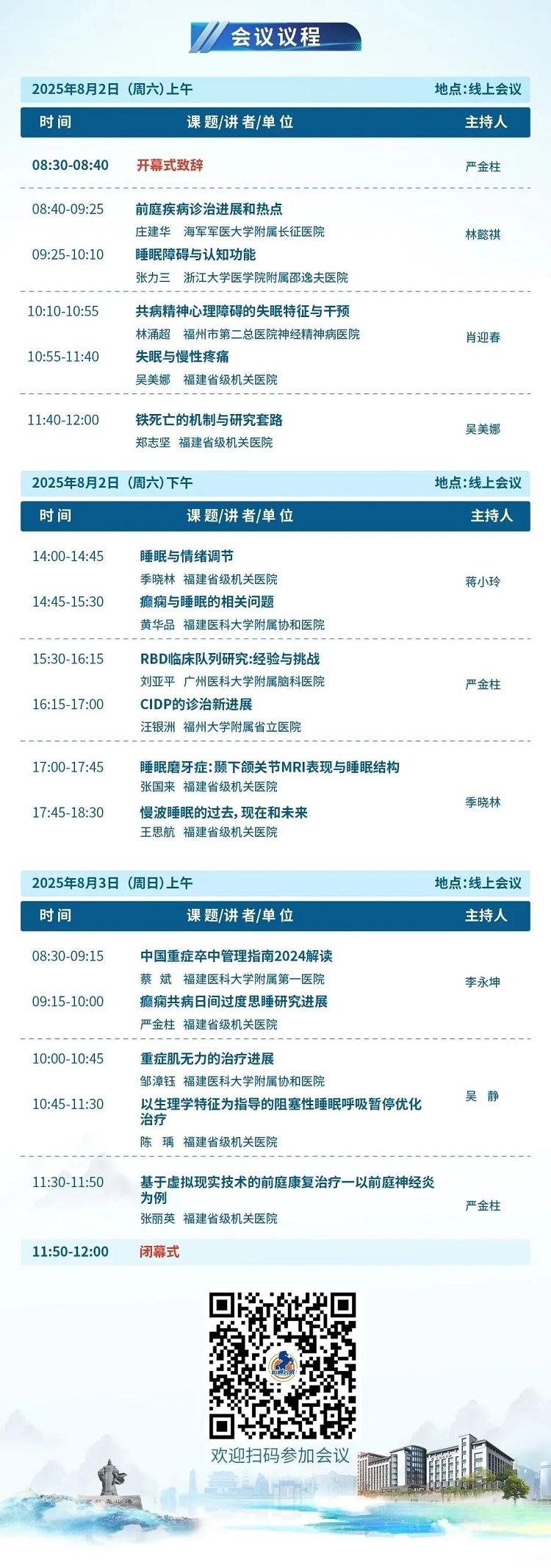 為推動(dòng)神經(jīng)內(nèi)科領(lǐng)域?qū)W科發(fā)展,促進(jìn)神經(jīng)內(nèi)科、睡眠醫(yī)學(xué)、精神心理等??频慕涣骱献?,由我院主辦的線上省醫(yī)學(xué)繼續(xù)教育項(xiàng)目“第4屆神經(jīng)-睡眠-精神新進(jìn)展學(xué)習(xí)班”于8月2-3日順利舉辦。