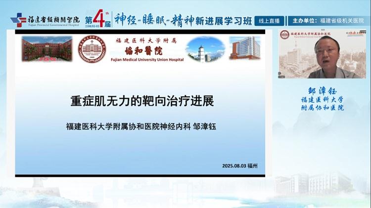 福建醫(yī)科大學(xué)附屬協(xié)和醫(yī)院鄒璋鈺教授分享了重癥肌無(wú)力的治療進(jìn)展,分享了最新前沿的治療藥物。