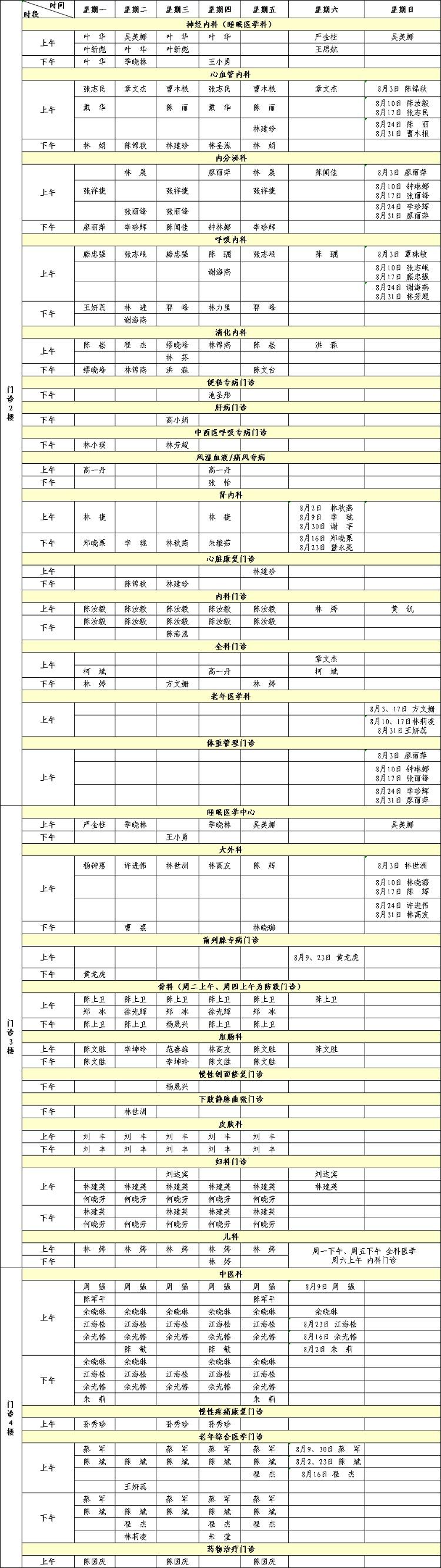 福建省級(jí)機(jī)關(guān)醫(yī)院2025年8月專家門診排班表來(lái)啦!有需要的小伙伴趕緊收藏。