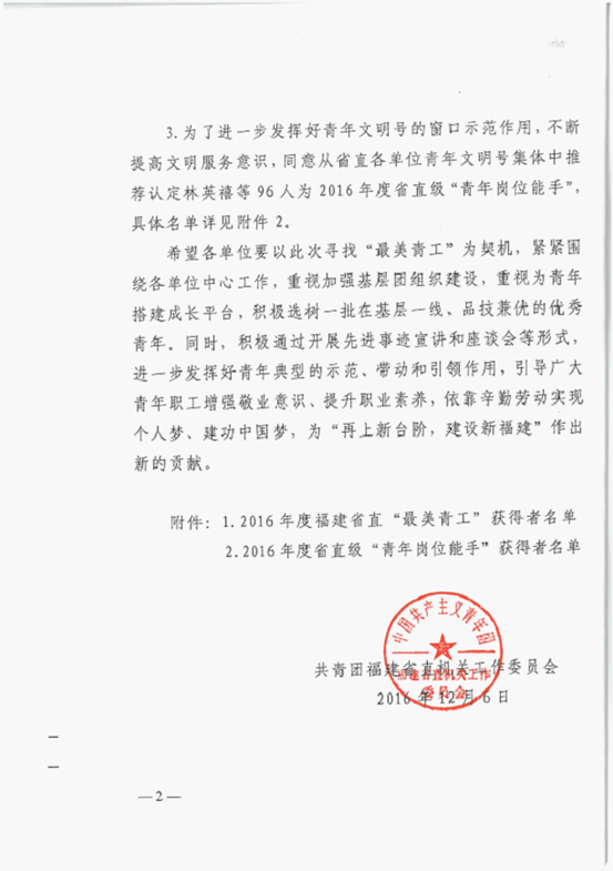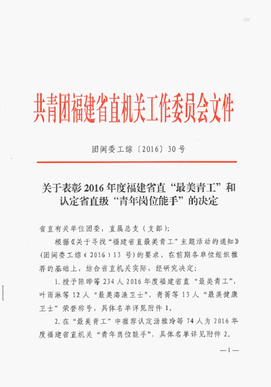 我院黃釩獲“2016年度福建省直最美健康衛(wèi)士”和“2016年省直級(jí)青年崗位能手”