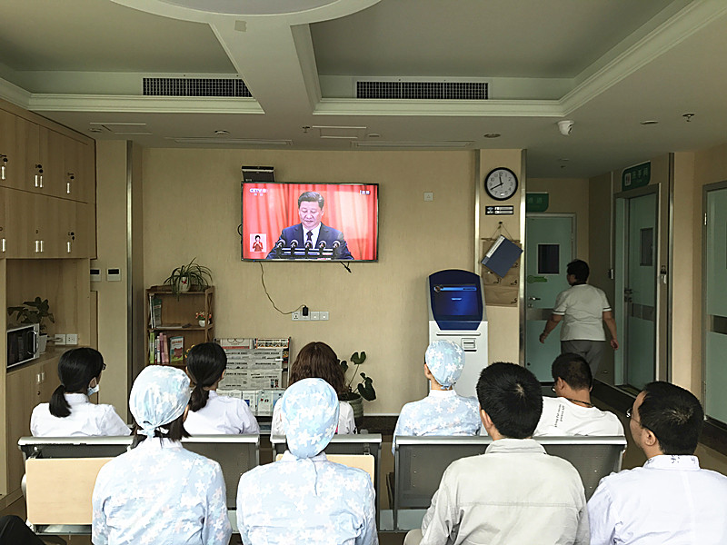 為慶祝黨和國家這一盛事,第一時間全面準確領(lǐng)會黨的十九大報告精神,在保證正常醫(yī)療工作的情況下,我院黨委組織干部職工收看黨的十九大開幕式直播盛況。