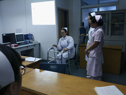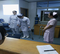 教學(xué)查房以一位股骨轉(zhuǎn)子間骨折病人為主線展開(kāi),引出了一系列疾病相關(guān)知識(shí)和骨科特殊治療。三位同學(xué)圍繞該病人的病情、病因、康復(fù)相關(guān)知識(shí)、護(hù)理要點(diǎn)等進(jìn)行了詳細(xì)的講解和生動(dòng)的演示:比如踝泵運(yùn)動(dòng)、如何使用助行器、如何使用拐杖。同時(shí)在查房過(guò)程中插入了問(wèn)答環(huán)節(jié),前來(lái)參加教學(xué)查房的同學(xué)聽(tīng)的全神貫注,回答問(wèn)題積極踴躍,其他學(xué)生可以隨機(jī)提問(wèn),對(duì)疑難問(wèn)題由指導(dǎo)老師釋疑,現(xiàn)場(chǎng)氛圍嚴(yán)肅活潑,張弛有度。